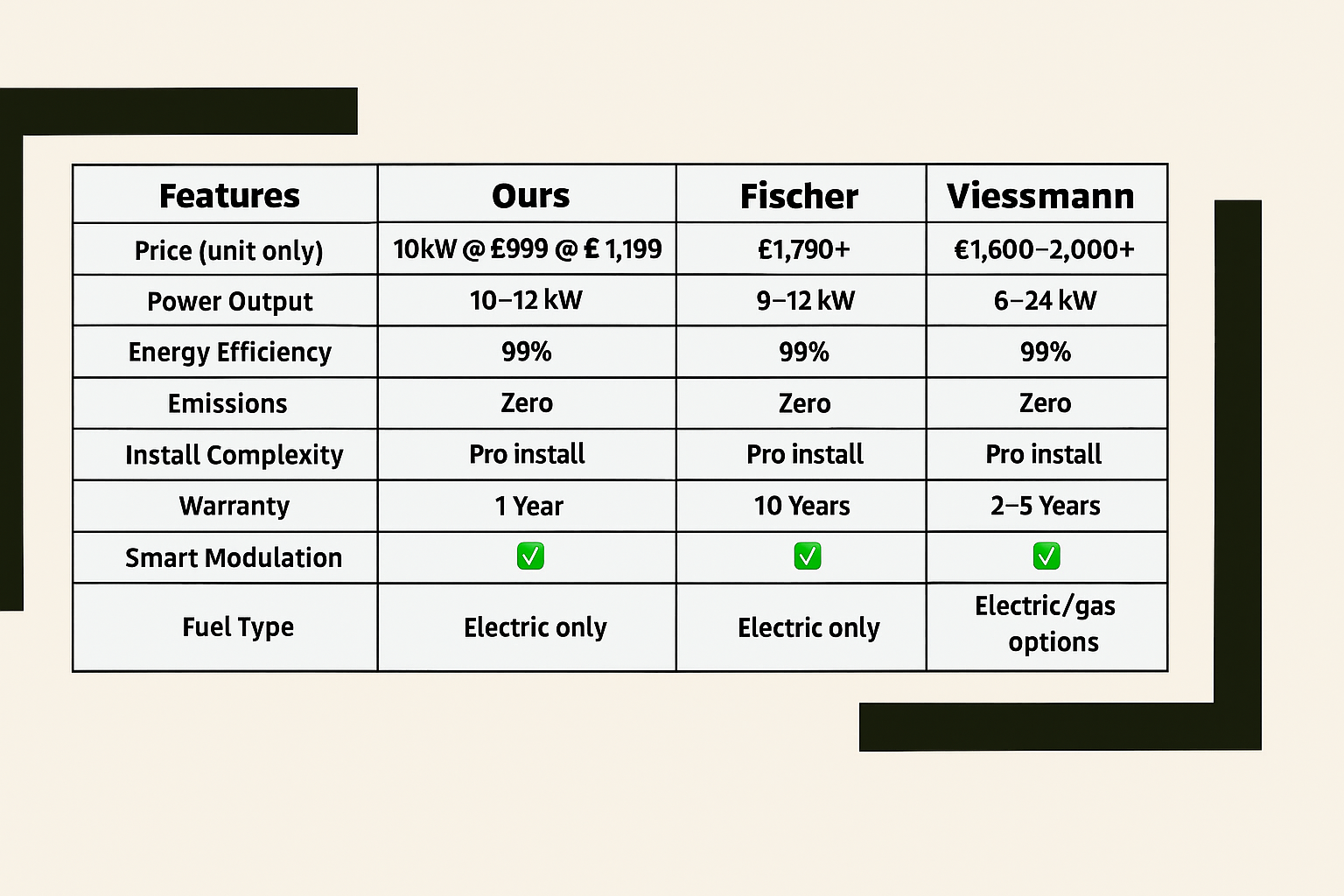 Based on 34p/kWh electricity, the cost is comparable to Fischer and Viessmann systems.